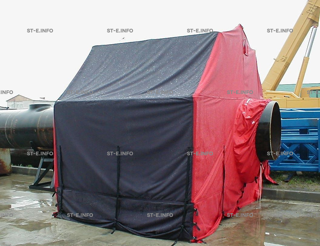 Укрытие «Шатер» эффективно защищает рабочие места сварщиков от атмосферных осадков, ветра и низких температур при сварке, ремонте и изолировке труб различных диаметров. Для удобства перемещения «Шатра» по трубопроводу основания палатки оснащены колесами.